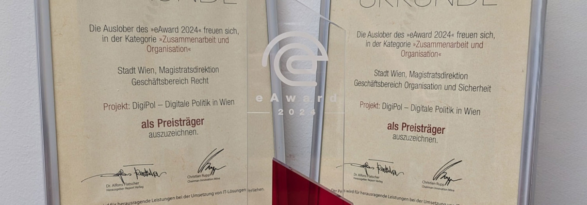 Das Projekt „DigiPol – Digitale Politik in Wien“ wurde am 1. Oktober 2024 mit dem österreichischen Wirtschaftspreis eAward 2024 ausgezeichnet. Das Projekt zur Prozess-Digitalisierung der politischen Gremien in Wien erreichte in der Kategorie „Zusammenarbeit und Organisation“ unter 10 Nominierungen den 2. Platz.
