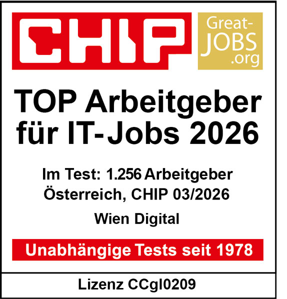 Das deutsche Magazin CHIP listet Wien Digital (MA 01) 2026 bereits zum 4. Mal in Folge als TOP Arbeitgeber für IT-Jobs. Mehr als 1.200 österreichische Arbeitgeber*innen wurden mithilfe einer „360‑Grad‑Methodik“ analysiert: Damit die Bewertung nicht nur auf einem einzelnen Eindruck beruht, kombiniert die Studie mehrere Perspektiven. Dazu zählen unter anderem Prozesse im Recruiting, Transparenz im Auftritt (Karriere-Infos, Kontaktmöglichkeiten, Einblicke) und Bewertungen auf Job-Plattformen.